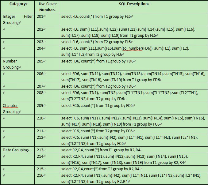 3.Date grouping are all done with two-tier grouping, which, as we could see, Oracle performs better.